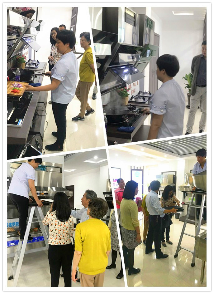 專(zhuān)家一行首先親臨多環(huán)公司產(chǎn)品展廳,多環(huán)公司產(chǎn)品展示操作人員現(xiàn)場(chǎng)采用鮮紅的干辣椒、洋蔥、陳醋等食材及調(diào)料分別開(kāi)啟家用及酒店?duì)t灶具及凈化機(jī)進(jìn)行爆、炒、炸烹飪操作,在不足六十平方米的展示空間內(nèi)進(jìn)行了近二十分鐘的操作,室內(nèi)幾乎無(wú)煙無(wú)味,現(xiàn)場(chǎng)人員對(duì)多環(huán)公司產(chǎn)品在這樣相對(duì)封閉的空間內(nèi)對(duì)油、煙、味的處理效果為之感嘆和贊賞。協(xié)會(huì)專(zhuān)家在現(xiàn)場(chǎng)就該產(chǎn)品采取的技術(shù)方案及關(guān)鍵技術(shù)向多環(huán)公司技術(shù)負(fù)責(zé)人做了深度的詢問(wèn)和了解。